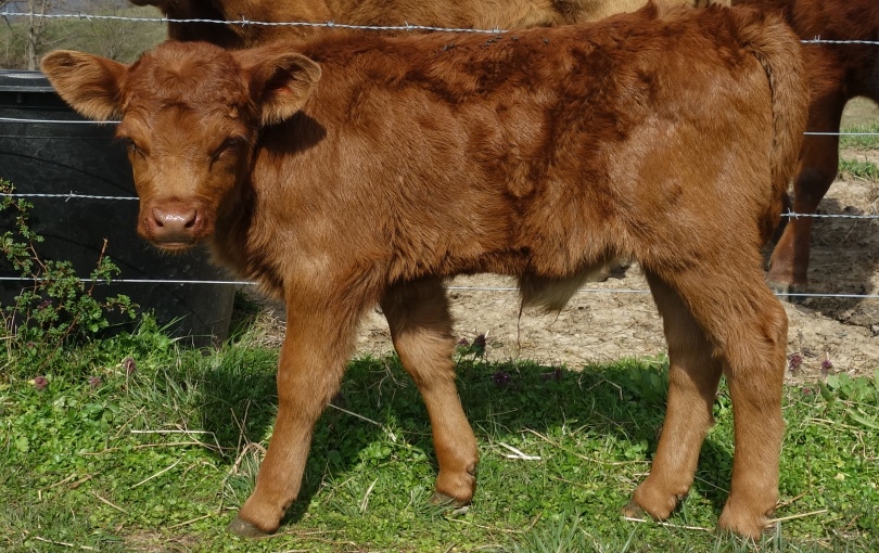 What a nice bull calf out of Esmeralda! One look at him & I said “He looks like a brick”, and the name stuck. His registered name is of course a nod to his fabulous granddam, Get N Lucky. Bricker was a very vigorous calf at birth, as were all of Blue’s calves. On his feet & looking for his first meal within a few minutes!