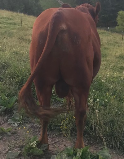 At 2 years old, this boy continues to impress me. He has superb conformation and is filling out & muscling up nicely. He has a balanced, clean look about him, and is maturing nicely. His first calves are hitting the ground & look good!