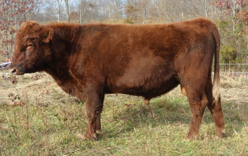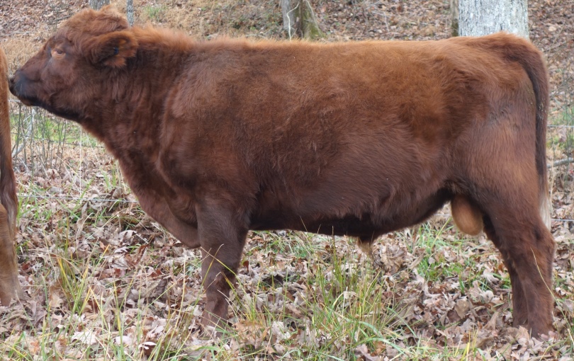 Duke is a neat, interesting bull to add to my breeding program. He has the Belle Fourche/Mrald/Hillview bloodlines behind him that so many love. He has nice depth, a straight topline, good hook to pin angle & length, and long hip, as these lines are known for. I look forward to having some nice calves out of this young guy.