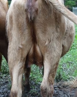 Bunny is a very nicely built dun girl, with a long, deep body, and a nice, quiet temperament. Her udder has a nice level floor & good attachments, and is holding up well, into her fifth lactation. She hasn’t been trained to milk, but is halter trained & easy to manage.