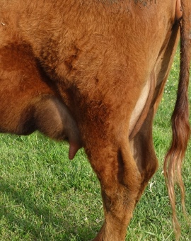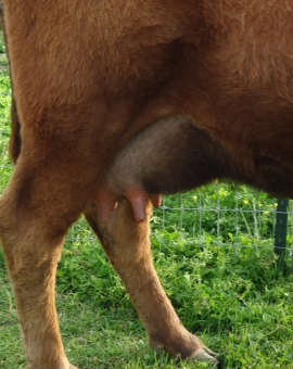 Libby has matured into a fine-looking, well-built cow. And such a love! I’m very happy with the improvements I see over her dam. She has great conformation, milk production and muscling. She’s milking very well and has a great udder with a nice high rear attachment. She produces the rich creamy milk her lines are known for…delicious!