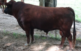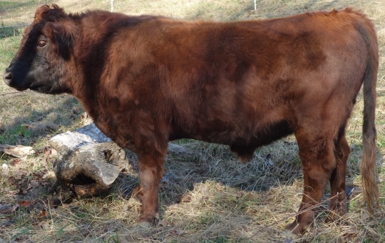 I’ve been told that Circle H’s Frederick linebreeds well, and I believe it. This one sure worked! I sold Trixie bred to Rousseau, and was able to buy this resulting boy back. He looks like a mini Rousseau … stocky, with excellent conformation, and he has that super sweet temperament as well. He is maturing into a high quality breeding bull.