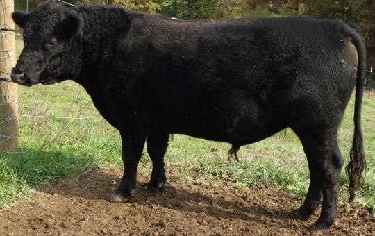 Cash is maturing into a fabulous looking young bull. He has great conformation, with exceptional depth & width, and a WIDE stance to match. He has excellent feet & legs, a clean front end and a clean, tight sheath & navel. He’s well muscled, and has great dairy genetics behind him. His scrotal structure shows that he’ll pass his dam’s strong suspensory ligament. Though I can’t tell much about his daughters’ udders yet, their teat placement/spacing definitely looks to be improved over their dams. His average calf birth weight so far is 49 pounds.