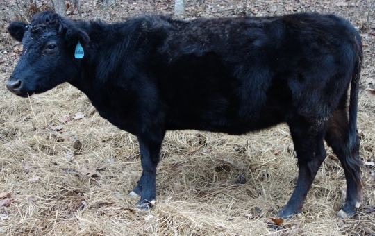 This girl was cute as a bug when she came here. She has settled in to her new home nicely, and is a sweet, calm cow. She’s a well-built girl with lots of length & thickness, and has matured very nicely. Very happy to have her in my herd!