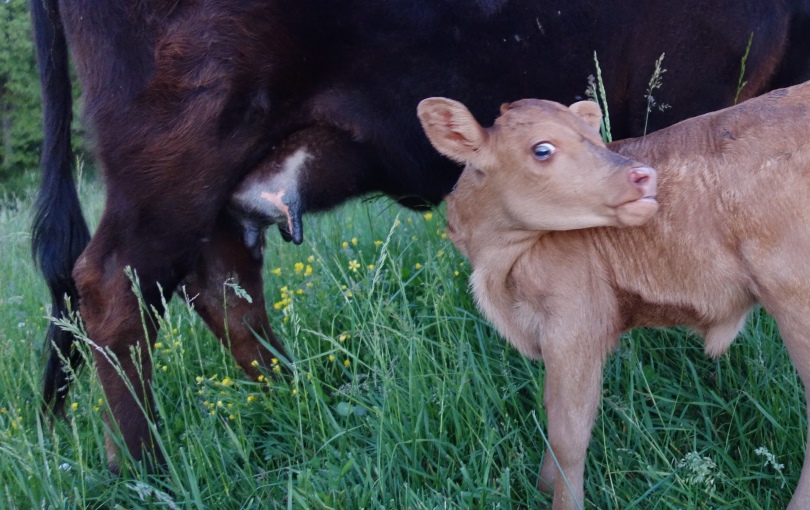Mel has calved and is being a great momma. She has the lovely udder she was bred for and calmly settled into the milking routine. She should have really good milk volume once she hits third lactation, given Minnie’s 4+ gallons/day, and will be a great family milk cow.